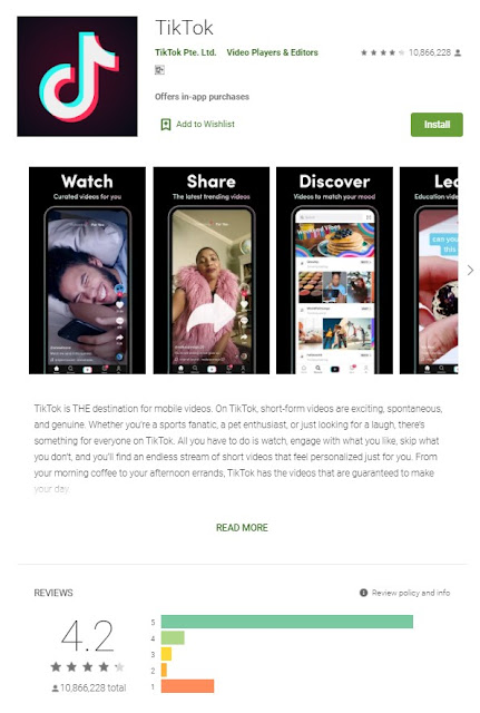 Spesifikasi dari aplikasi TikTok simak dibawah ini :